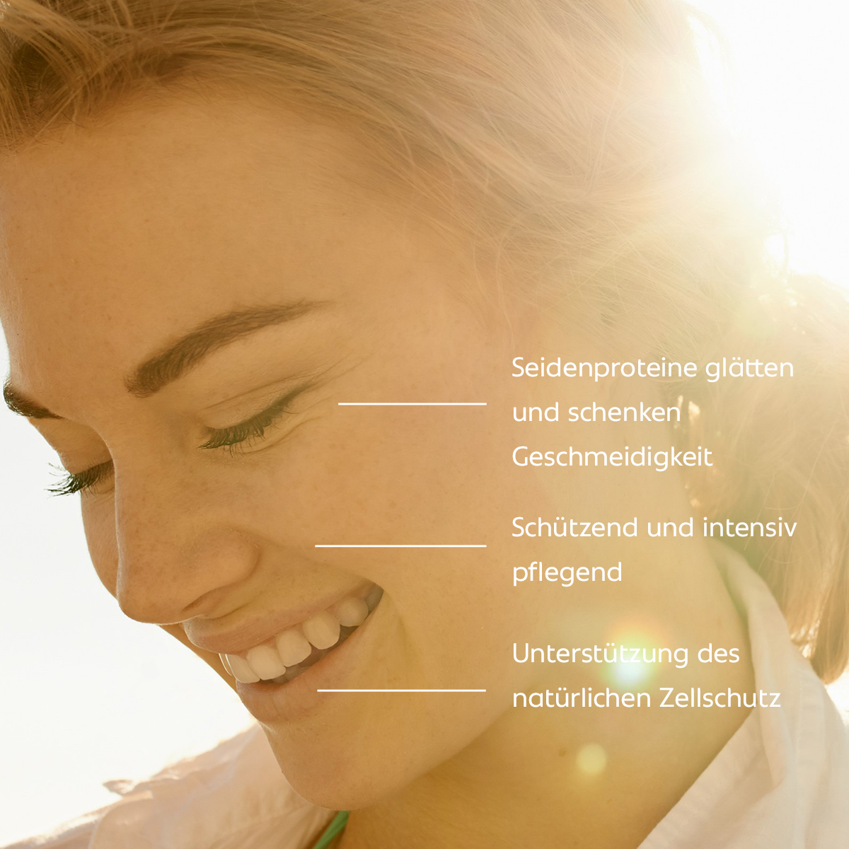 - Seidenproteine für Feuchtigkeitsbindung und glatte Hautstruktur