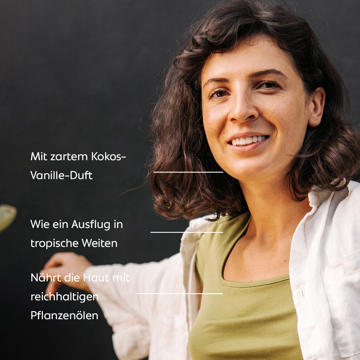 - Pflegendes Duschöl mit sinnlichem Kokos-Vanille-Duft