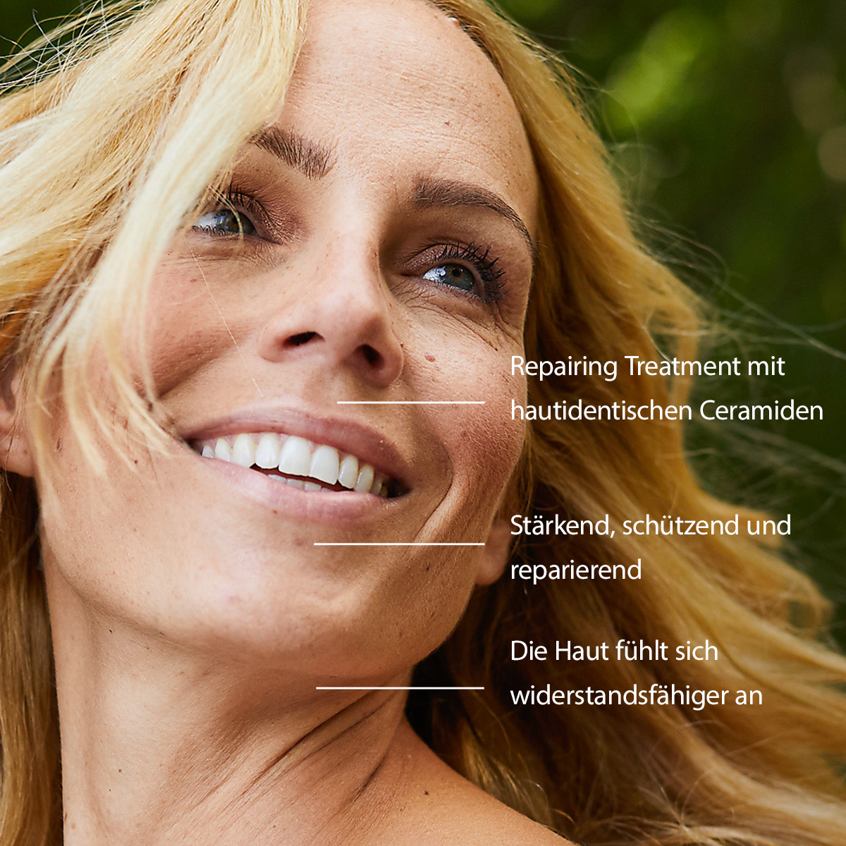 „Ich empfehle diese Ampulle besonders gern bei gestresster Haut, denn sie stärkt die Hautbarriere, spendet intensive Feuchtigkeit und schenkt das beruhigende Gefühl von Schutz und Geschmeidigkeit.“