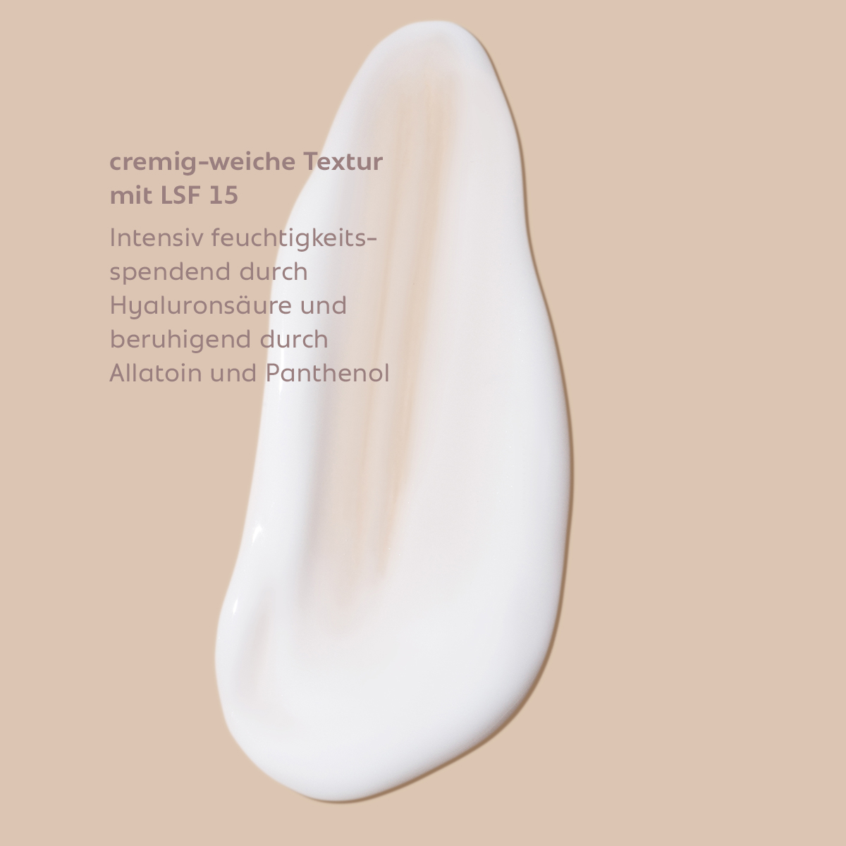 - Hyaluronsäure spendet intensive Feuchtigkeit, Allantoin und Panthenol wirken beruhigend