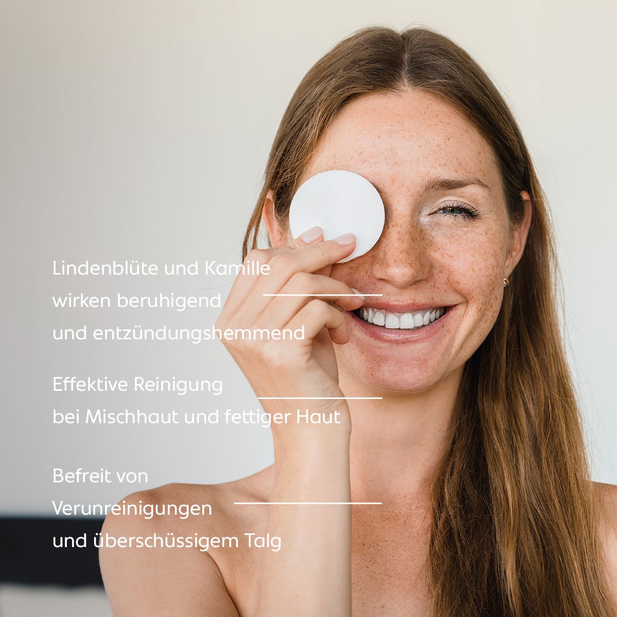 „Diese Reinigung fühlt sich erfrischend leicht an, sie befreit die Haut von Talg und Unreinheiten, beruhigt zugleich und hinterlässt ein klares, entspanntes Hautgefühl.“