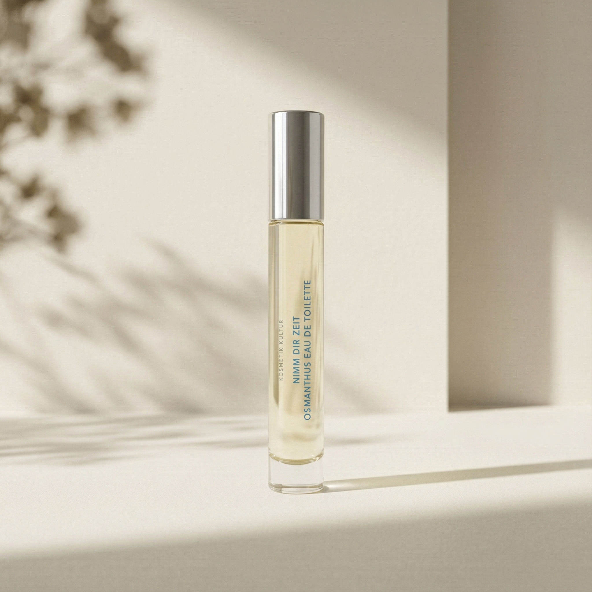 Genießen Sie den verwöhnenden Duft zarter Osmanthusblüten. Das NIMM DIR ZEIT OSMANTHUS EAU DE TOILETTE beginnt mit einer sanften, lebendigen Frische. Im Herzen zeigt sich ein warmes, florales Bouquet. Osmanthusblüten und ein Hauch Vanille bilden den Abschluss und legen sich wie ein zarter Schleier auf die Haut. Ein Duftmoment voller Ruhe, Wärme und natürlicher Eleganz.