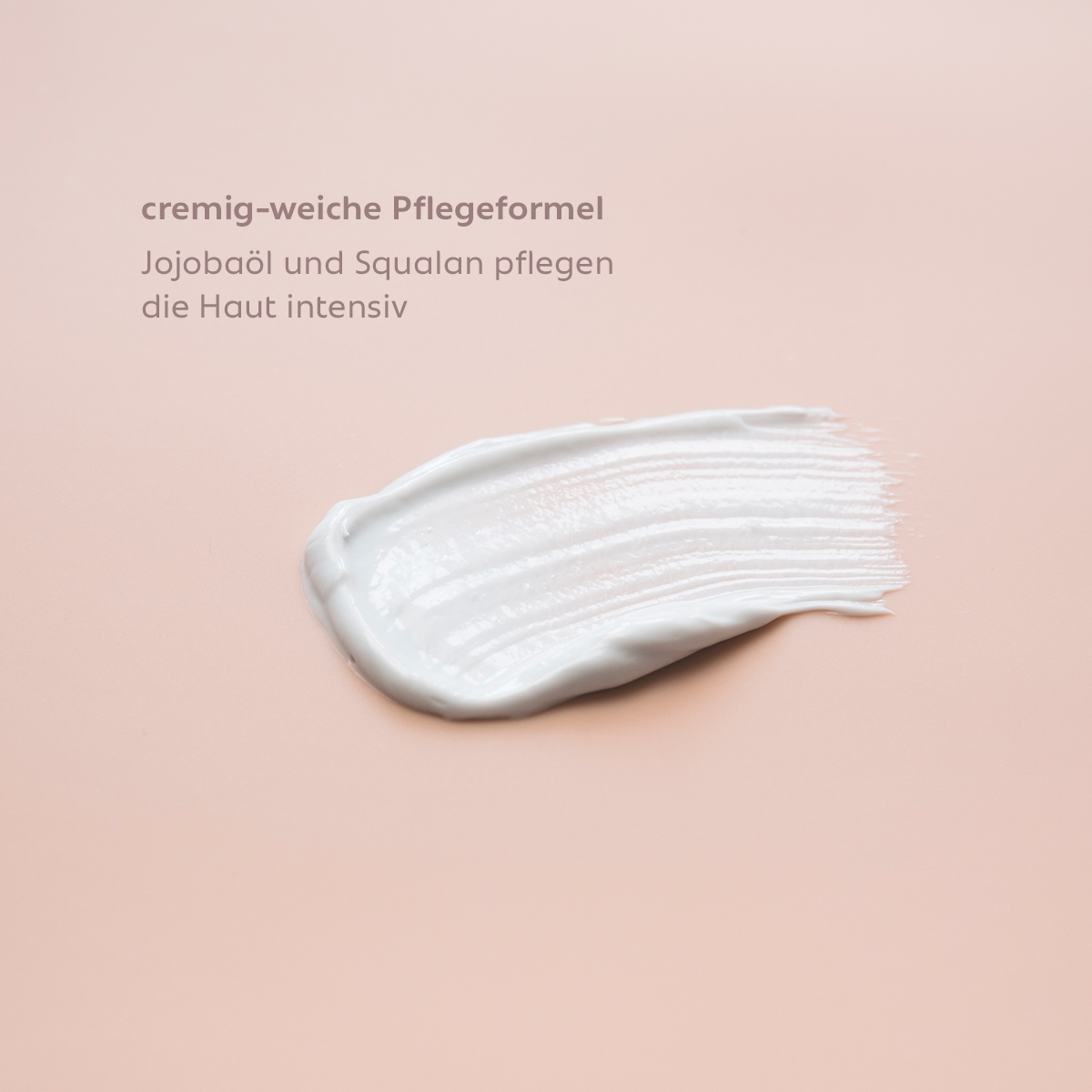 Auf Gesicht, Hals und Dekolleté auftragen und 10 Minuten einwirken lassen. Überschüsse sanft einmassieren oder mit einem feuchten Tuch abnehmen.