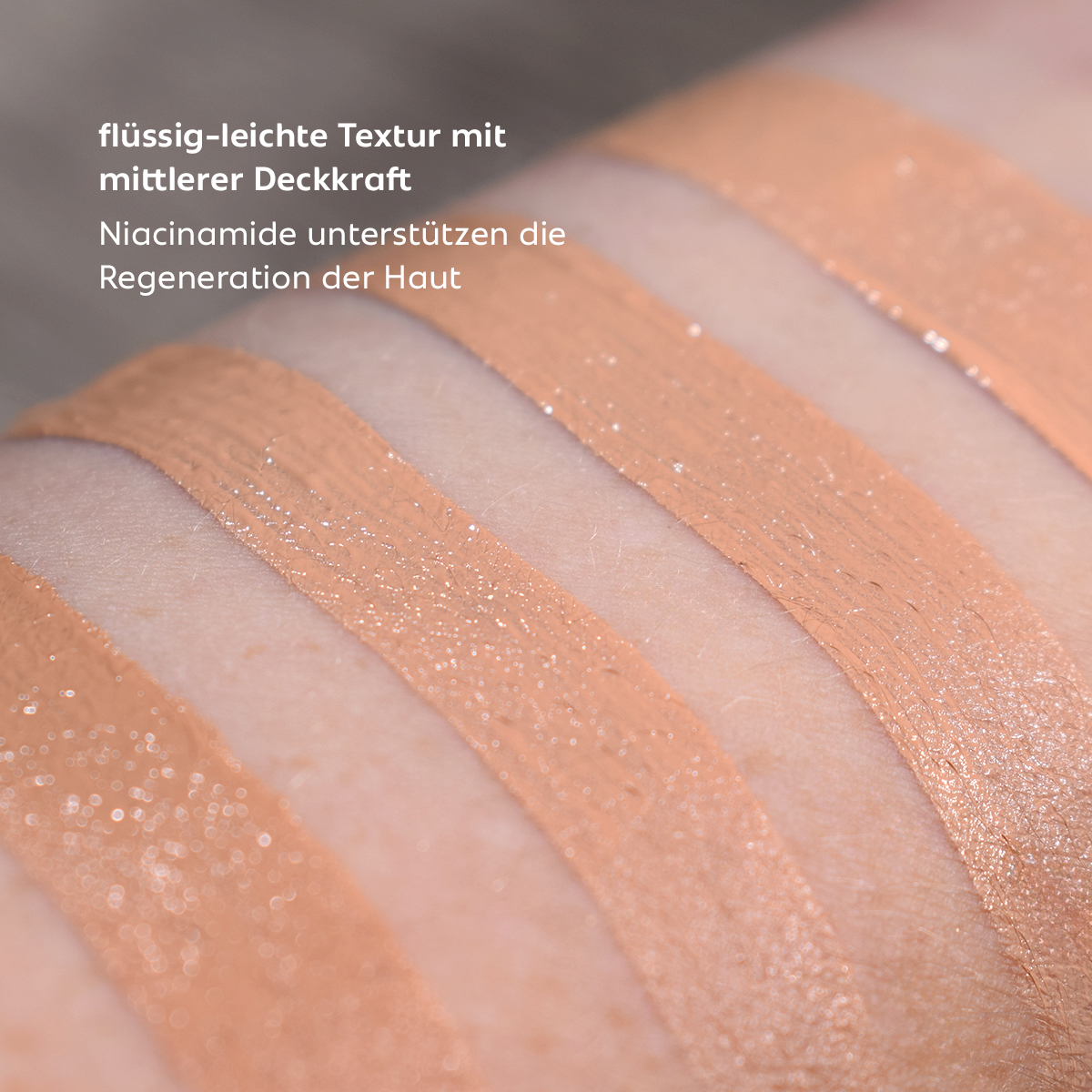 Die flüssig-leichte SKIN PERFECTION FOUNDATION vereint Pflege und Perfektion. Die federleichte Textur verschmilzt sanft mit der Haut, sorgt für ein seidig-glattes Finish und ein schwereloses Tragegefühl. Lichtreflektierende Pigmente kaschieren Unebenheiten, während Niacinamide die Regeneration der Haut unterstützen. Für einen natürlich ebenmäßigen glatten Teint und ein gepflegtes Hautbild.