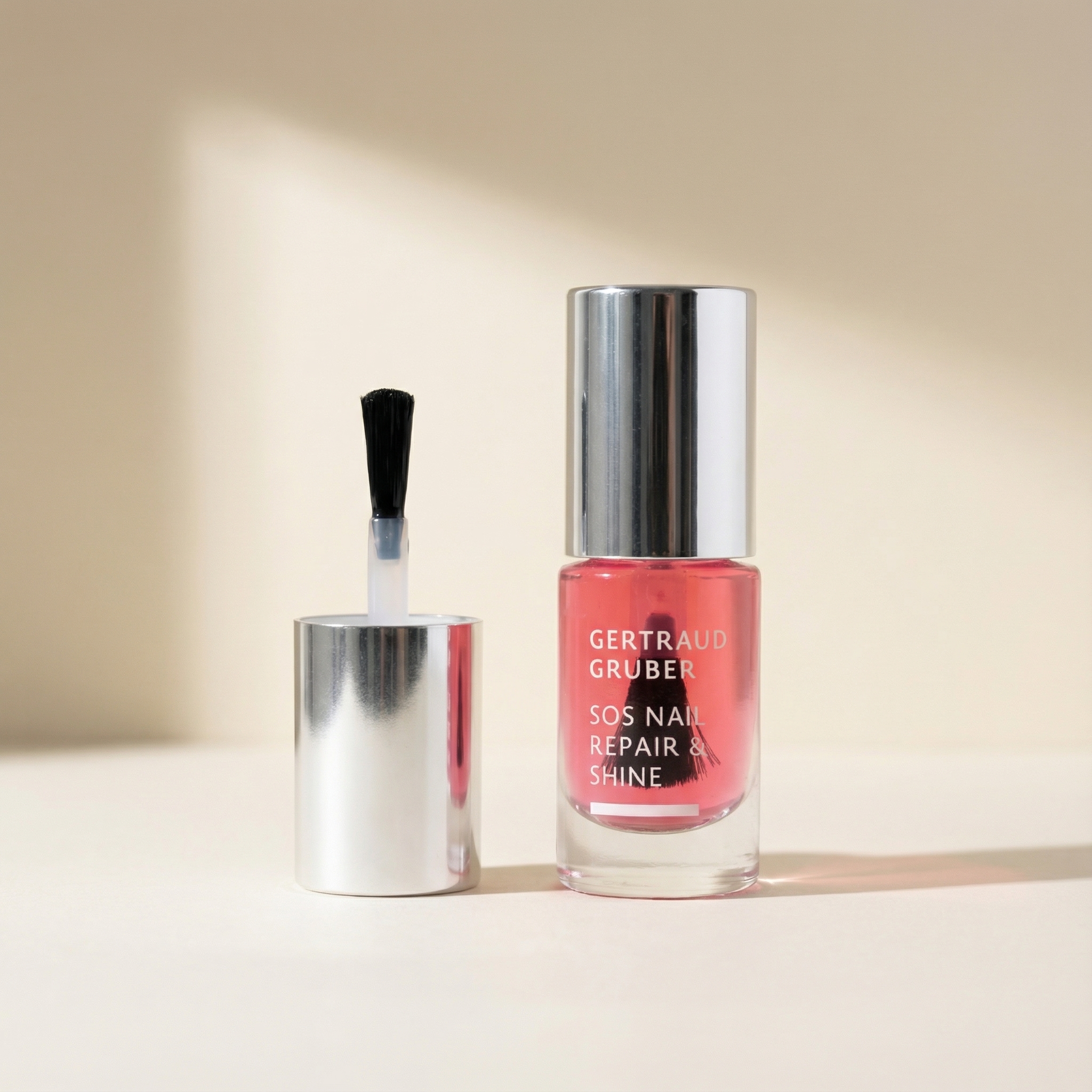 Der SOS NAIL REPAIR & SHINE ist mehr als eine Basis: Er ist gezielte Regeneration für strapazierte Nägel. Die innovative Pflegeformel stärkt sichtbar, glättet die Nägel und schenkt dabei einen dezenten, natürlichen Glanz. Panthenol, Vitamin C, Hexanal und AHA unterstützen die Regeneration und verbessern die Widerstandskraft. Der SOS NAIL REPAIR & SHINE ist ideal als Kur nach Gelnägeln oder als wohltuende Aufbaupflege. Er kann alleine als reine Pflege oder auch als Unterlack für den perfekten Schutz und als stabile Grundlage für den Nagellack aufgetragen werden.